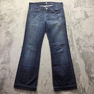 7 For All Mankind Dojo Jeans Womens 28 Blue Dark Wash Flare Wide Leg Made in USA