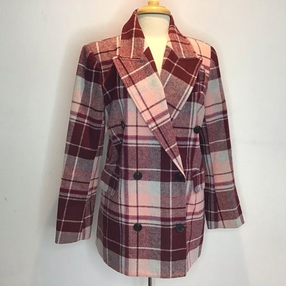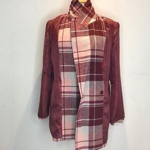 7 For All Mankind Double Breasted maroon/burgundy plaid wool blend blazer M NWT