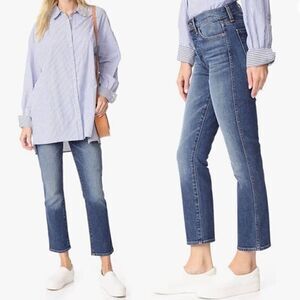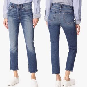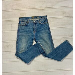 7 For All Mankind Edie Medium Wash Faded Straight Leg Crop Jeans Size 28