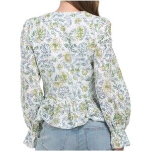 7 For All Mankind Eyelet Peplum Button Front Blouse Floral Romantic Peasant XS