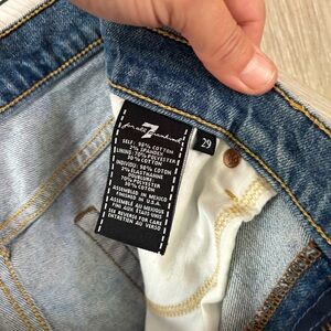 Stylish faded jean shorts. Frayed hem design. Ideal for everyday wear.