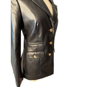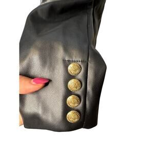 7 For All Mankind Faux Leather Black Blazer Women's Medium Gold Buttons