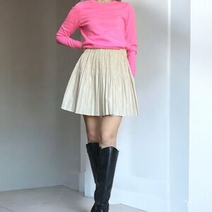 7 for all mankind cream smocked faux leather full mini skirt. Raw edges. Stretchy. New. Fits better for size 4. It was a bit too tight for size 6.