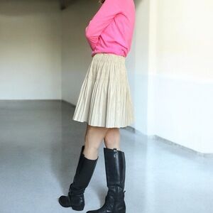 7 For All Mankind Faux Leather Mini Skirt Aline Smocked Pleated Cream S New
