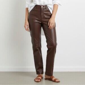 Upgrade your wardrobe with these stylish brown faux leather pants. Perfect for any occasion, these pants offer both comfort and a sleek look.