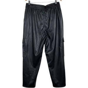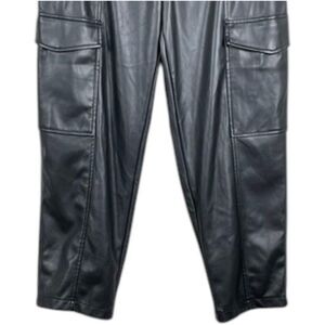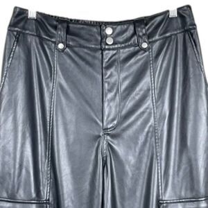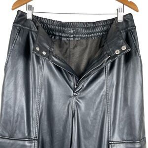 7 For All Mankind Faux Leather Pants Large Women Black High Rise Vegan Cargo EUC