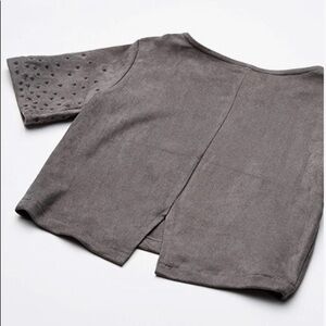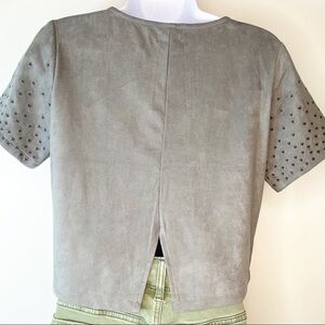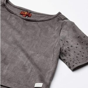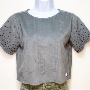 7 For All Mankind Faux Suede Embroidered Tee Slightly Cropped Top