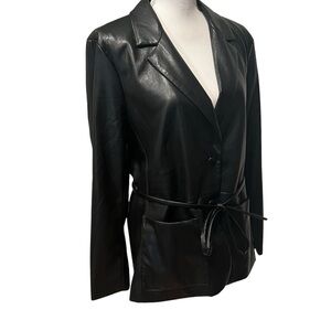 7 For All Mankind Faux Vegan Leather Belted Jacket Blazer Black Size Large