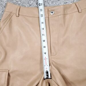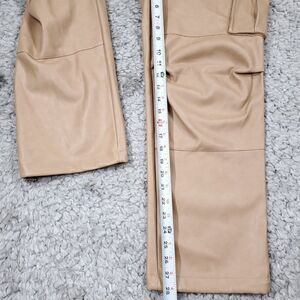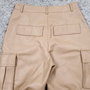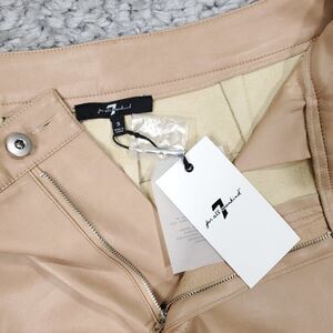 7 For All Mankind Faux Vegan Leather High Rise Straight Cargo Pants Tan Small