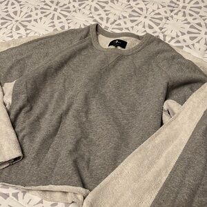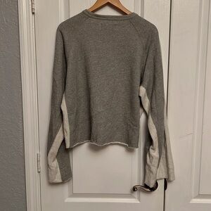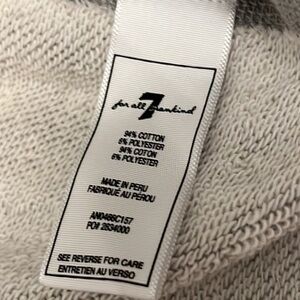 Authentic, preworn and in excellent condition. 7 For All Mankind Flare Sleeve Crop Sweatshirt. French terry fabric with reverse panel accents and unfinished hem. Size L Sweatshirt is light grey but can appear darker in different lighting. Please see photos and how the color varies in light