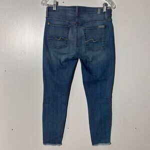 7 For All Mankind Frayed Ankle Hem Skinny Washed Blue Jeans Women’s Size 28