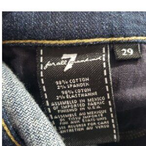 The 7 For All Mankind Ginger Flare Wide Leg Denim Blue Jeans in size 29 are a stylish and versatile addition to any woman's wardrobe. Made from a mix of elastane and cotton, these jeans offer comfort and stretch. The flared style and wide leg fit create a flattering silhouette, while the 5-pocket design adds both functionality and a touch of detail. Perfect for all seasons, these machine washable jeans are easy to care for and are sure to become a go-to staple for any casual outfit. Made in the United States by the trusted brand 7 For All Mankind, these jeans are a timeless and quality choice for any fashion-conscious woman.