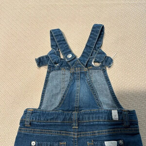 Very cute girl’s jean shorts overalls size 4T in good condition. There’s one flaw (see last few pictures)