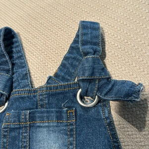 Very cute girl’s jean shorts overalls size 4T in good condition. There’s one flaw (see last few pictures)