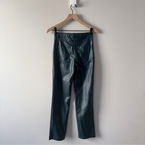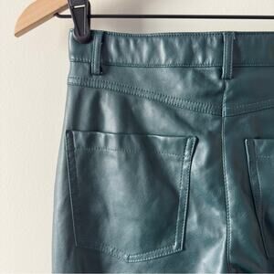 7 For All Mankind Green Faux Leather Pants Pockets zip button retro biker solid