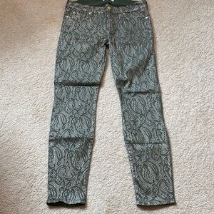 7 For All Mankind Green Gold Paisley Skinny Jeans Size 30