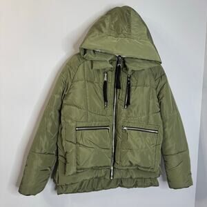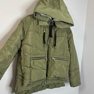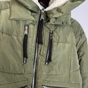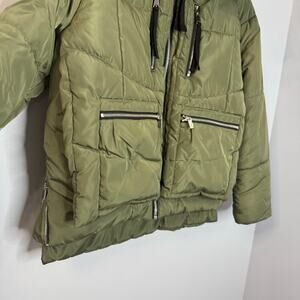 7 For All Mankind Green Satin Cropped Puffer Jacket Zip details women's S