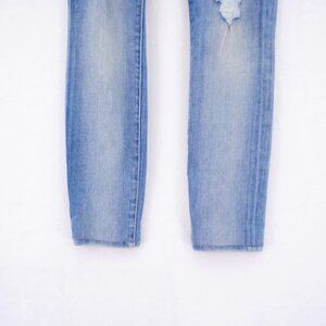 7 For All Manind Gwenevere Jeans Ligh Blue Denim Stone Wash -24- 25 / 27.5 Low Rise Factory Distressed Cotton Polyester Spandex Whiskering