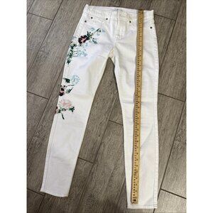 7 For All Mankind Hand Painted Floral The Super Skinny Ankle White Jeans 27 $279