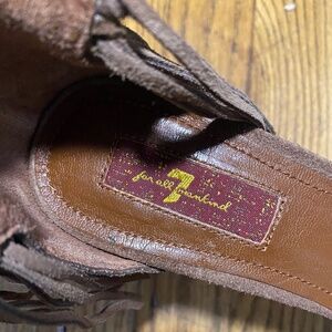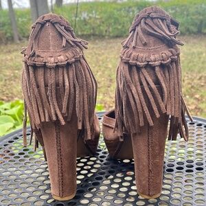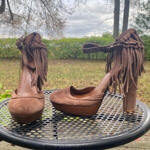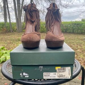 7 For All Mankind Hazelnut Suede Platform Fringe Heels Sz 9