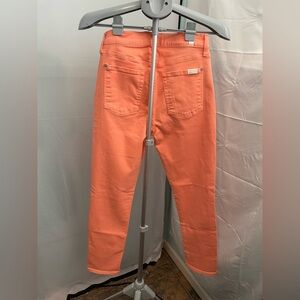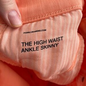 7 For All Mankind High Waist Ankle Skinny Jeans Bright Orange/coral Size 28