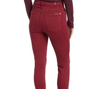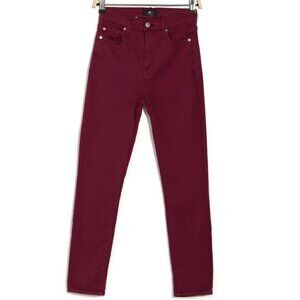 Great condition, new with tags. 7 For All Mankind. High Waist Ankle Skinny Jeans. Merlot. You'll want to wear these skinnies on the regular—they're made from soft stretch denim that's comfortable all day.