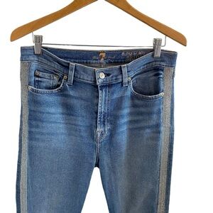 7 For All Mankind High Waist Ankle Skinny Jeans With Silver Shimmer Side Stripe
