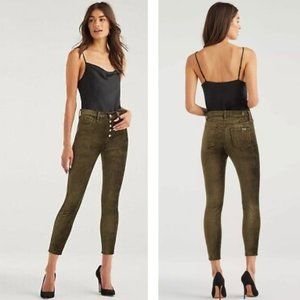 High waist ankle skinny jeans made from velvet in fatigue offer a sophisticated look that is rich with texture and style. Designed with an exposed button fly that adds the right amount of glamour for evenings where you'll want to step it up.