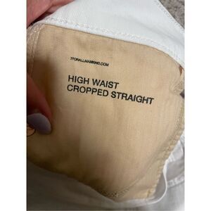 7 For All Mankind High Waist Cropped White Straight Button Fly Jean Size 31