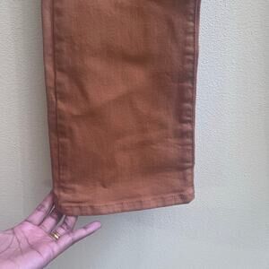 7 For All Mankind High Waisted Coated Crop Straight Leg Jeans Orange/Ginger 26