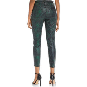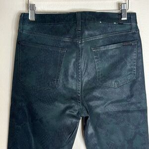 7 For All Mankind High-Waist Ankle Skinny Coated Green Python jeans SZ 28 NWOT