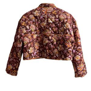 7 For All Mankind Jacket Womens M Dark Floral Quilted Cropped Lined Boho Hippie