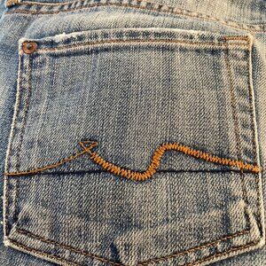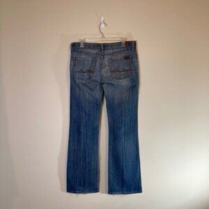 7 For All Mankind Jeans Lightly Distressed Denim Bootcut Mid-Rise 5 Pocket SZ 29