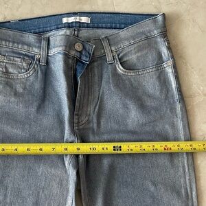 Elevate your style with these stunning 7 For All Mankind medium wash skinny jeans. The metallic shimmer adds a touch of glamour to your wardrobe, making them perfect for festivals, motorcycle rides, and rocking out in black.
