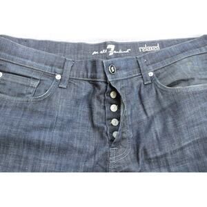 7 For All Mankind Jeans Mens 36 Blue Cotton Stretch Button Fly Relaxed Straight