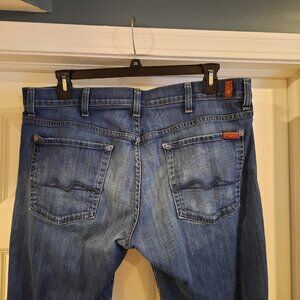7 For All Mankind Jeans Mens 38x33 Austyn Relaxed Straight Distressed Stretch . Condition is pre-owned, jeans are gently used and lightly distressed from actual wear. Tag size 38, see photos for actual measurements of waist, inseam, and leg opening. Thanks for taking a look!