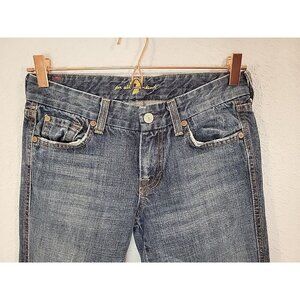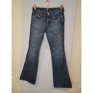 7 For All Mankind Jeans Womens 26 Measures 28x32 Blue Flared Denim Distressed