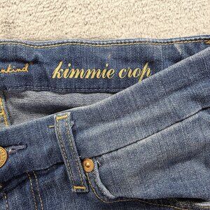 Brand details: Gold script "for all mankind" at inner waistband; "kimmie crop" embroidery; branded hardware; rear woven brand tabs
