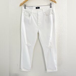 7 For All Mankind Josefina Feminine Distressed Boyfriend Jeans White NWT 28