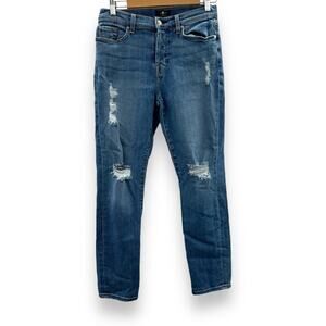7 For All Mankind Josefina Jeans Women's Sz 27 Medium Wash High Rise Distressed