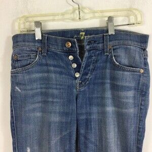 7 For All Mankind Josefina Skinny Boyfriend Button Fly Distressed Denim Jeans 24