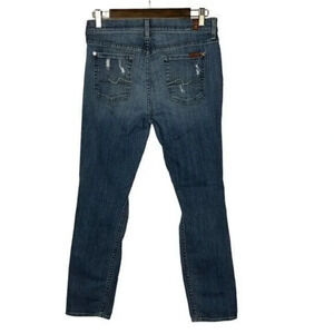 7 For All Mankind Josefina Skinny Boyfriend Distressed Dark Wash Jeans 25