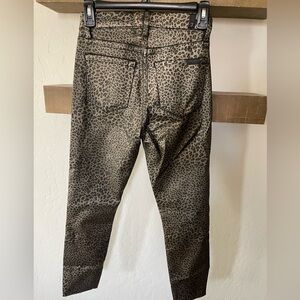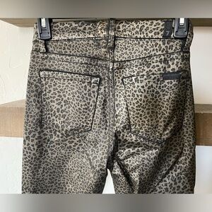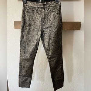 7 For All Mankind| Leopard Print Straight Jeans with Raw Hem—Waxed Material•••
