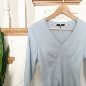 7 For All Mankind Light Blue Long Sleeve V-Neck Women's Bodysuit Size M