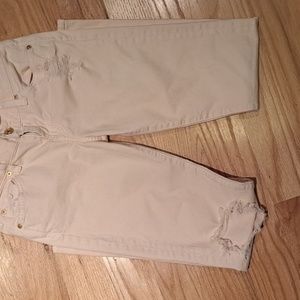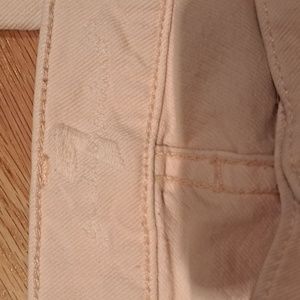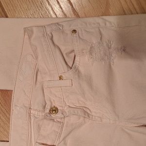 Light Pink distressed jean. Cigarette Slim cut.