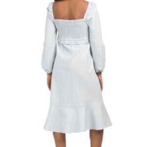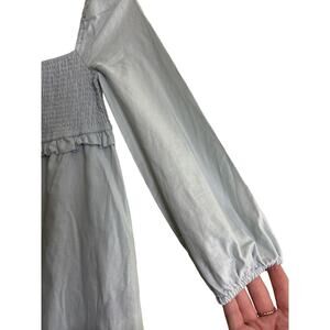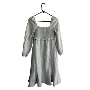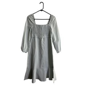 7 For All Mankind Linen and Cotton Blend Smocked Puff Sleeve Midi Dress