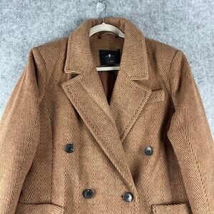 7 For All Mankind Long Coat Womens Large Brown Herringbone Double Breasted Heavy