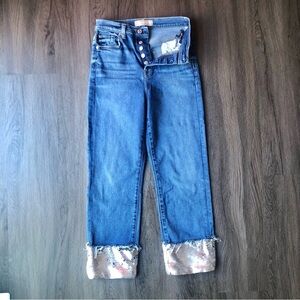 7 For All Mankind Luxe Vintage Sequin Boyfriend Jean Size 26 High Waisted Crop