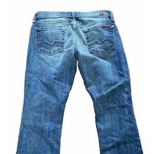 In a size 25, these jeans are tailored to provide a perfect fit for any woman. The medium wash fabric gives them a timeless look that can be paired with any top, while the slimming features ensure that you'll look your best no matter where you go. With the brand name 7 For All Mankind, you can trust that you're getting a quality product that is both stylish and reliable.
