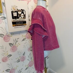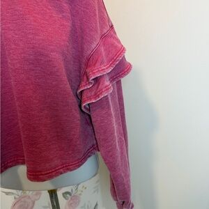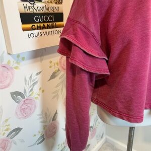 7 For All Mankind Medium Ruffle Cropped Sweatshirt Pullover Raspberry